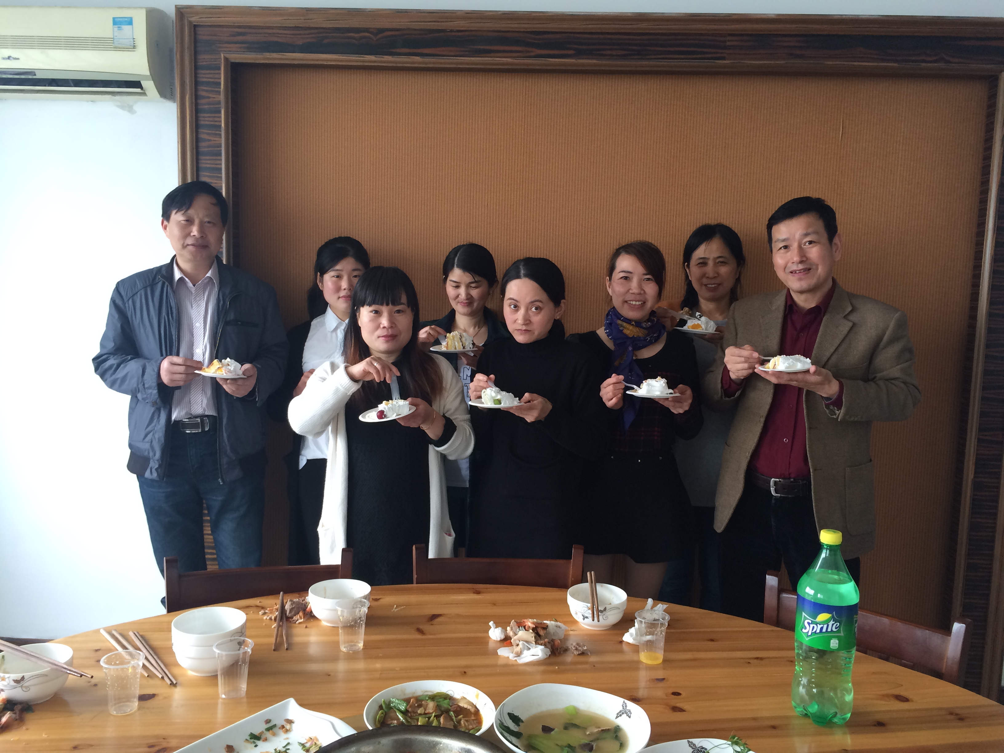 財(cái)務(wù)副總給壽星們切蛋糕。(PS:范總也是4月份的壽星哦!O(∩_∩)O)